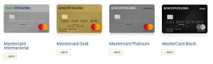 - MasterCard: Internacional, Gold, Platinum y Black.