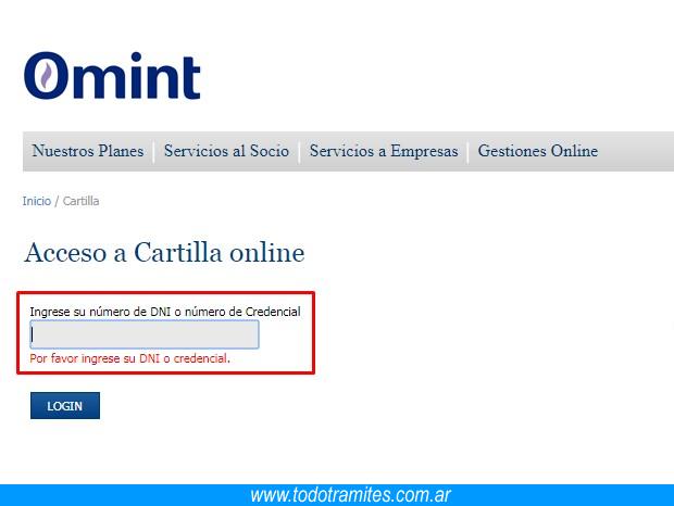Primero que nada deberás entrar a la página oficial de la compañía https://www.omint.com.ar. Luego, pone en el recuadro indicado tu número de documento de identidad o bien de credencial. Al completar la información requerida oprime el botón “Login” y vas a poder navegar entre las cartillas Omint a predisposición sin inconveniente.