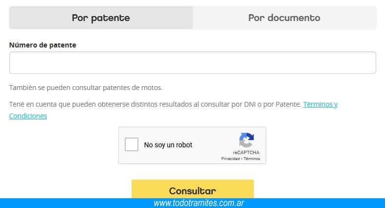 - Ingresa el número de documento, patente precedente y patente nueva. Haz click en ?Consultar?