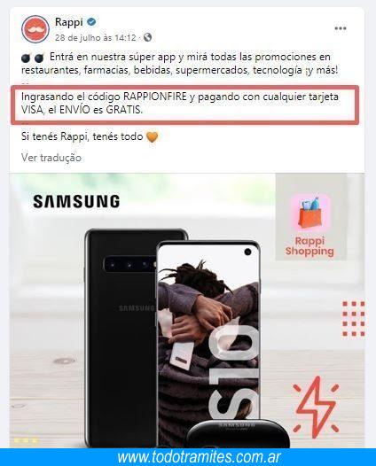 Luego, está una imagen de códigos de descuento Rappi promocionados por la página de la compañía en Facebook.