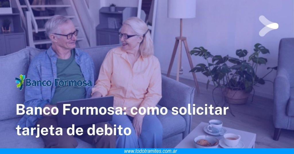 Para solicitar una tarjeta de débito, el titular de la cuenta va a deber llamar al banco para pedirla. Debera indicar: nombre y apellido, direccion, localidad, codigo postal, numero de telefono o bien celular, y alguna otra información que pida el banco para contrastar su identidad. Podrás contactar al banco de lunes a viernes entre las 7 y las 16 horas. También puede hacerlo mandando un correo a atencionalusuario@bancoformosa.com.ar señalando exactamente la misma información y también señalando que se quiere solicitar una tarjeta de débito.