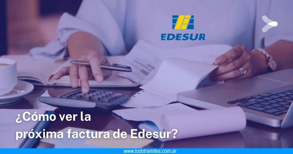 Para poder ver la próxima factura de Edesur solo debes acceder al lugar de Internet de la empresa (edesur.com.ar), ir a la sección «Oficina Virtual», ingresar a «Ver mis facturas», introducir tu usuario y clave de acceso y la próxima factura aparecerá en pantalla.